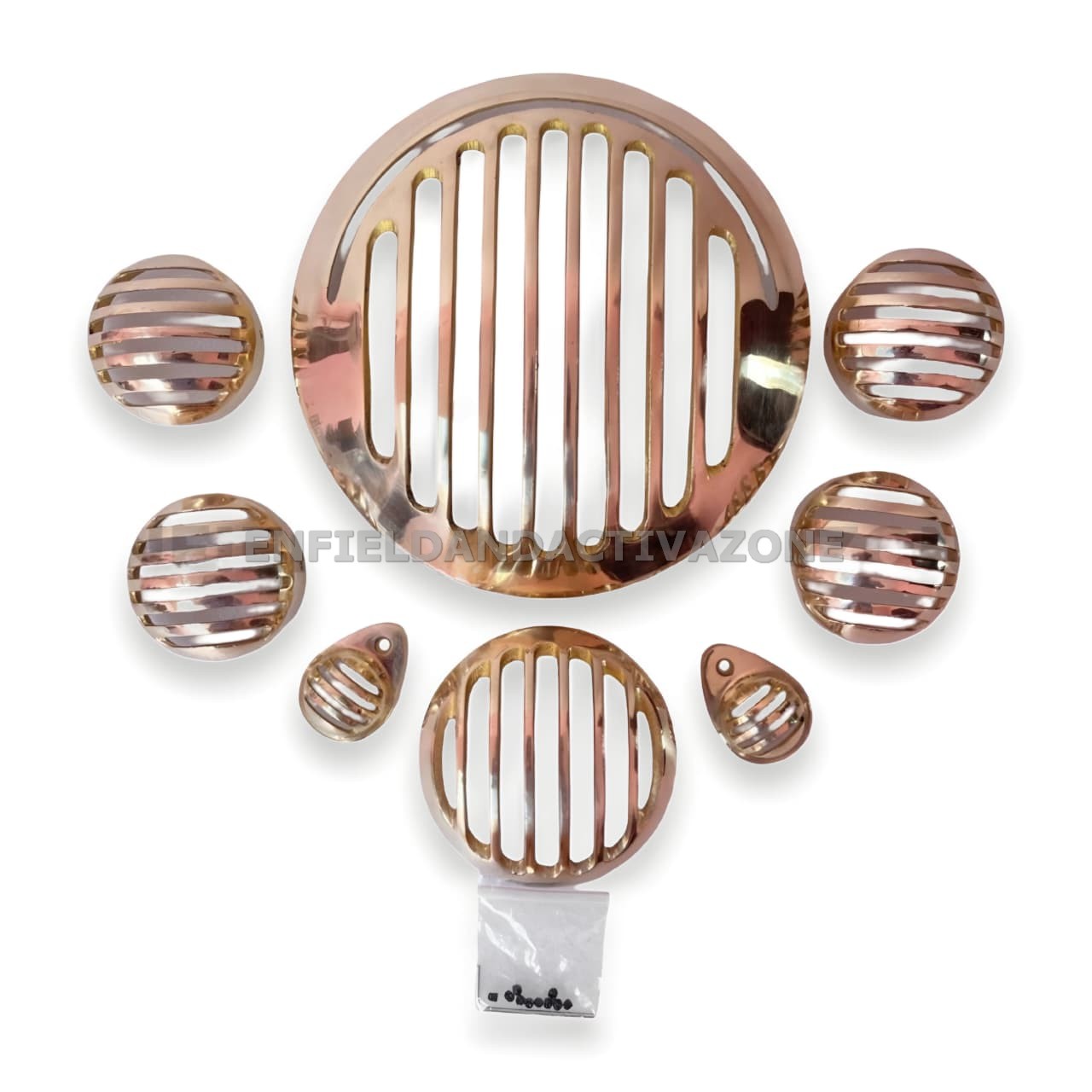 EAZ Premium Brass Headlight Grill Set for Next Generation Royal Enfield Classic Reborn – 8-Piece Custom Kit